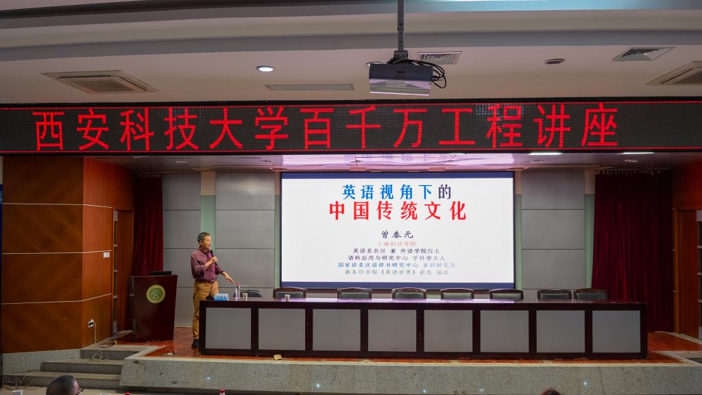 报告会上,曾泰元教授以《英语视角下的中国传统文化》为题作了报告。在曾教授“轻松却不失严谨”、“风趣却不乏厚重”的方式,深入剖析了英语学习与中国传统文化的紧密联系,为在座师生提供了一个全新的学习视角。袁新民副教授则以《快记单词的逻辑密码—基于统计与分类的词汇学习策略》为主题,分享了高效记单词的方法和技巧,还通过实例演示了如何运用逻辑和策略来提升词汇学习的效率。