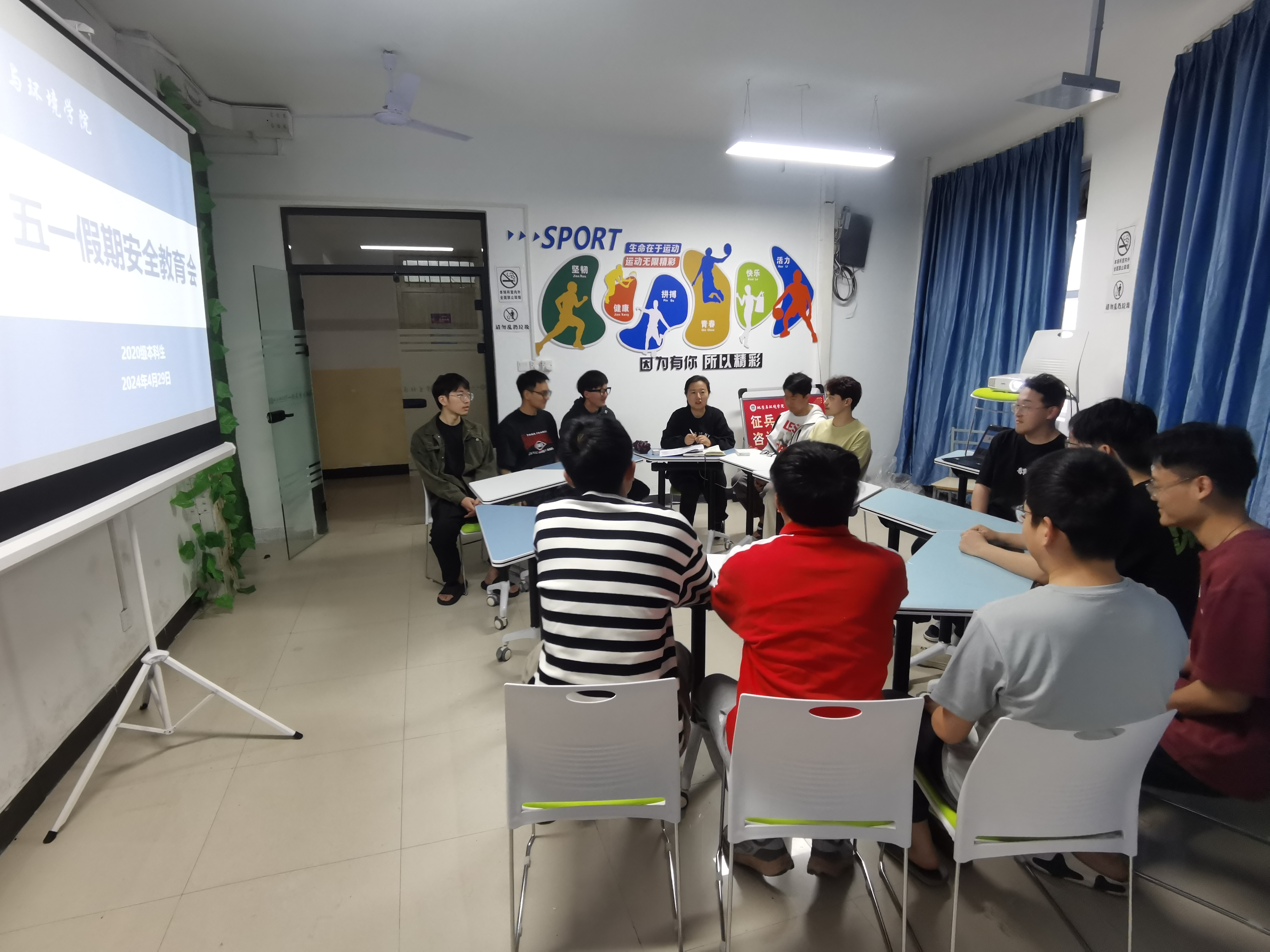 为做好五一期间的学生安全工作,4月29日中午,学院2020级本科生辅导员李琳在学院“一站式”学生社区召开“五一”假期安全教育会。