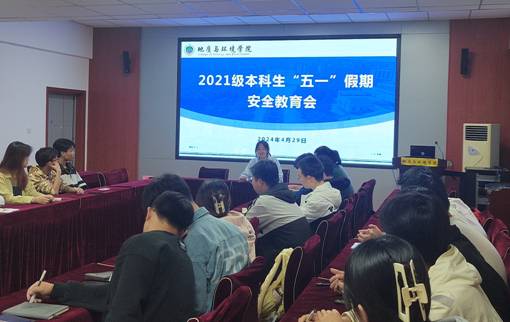 会上,陈艳丽对2021级本科生传达了学校及学院关于“五一”假期期间的相关规定,详细说明了离校报备审批流程,并组织学生填写《“五一”假期去向登记表》。随后,她从宿舍安全、交通安全、网络安全等方面,结合具体实例,教育引导学生提高风险防范能力,提醒学生汲取经验教训以防止各类安全事故的发生,希望同学们在享受假期的同时,不忘做好安全防范工作。