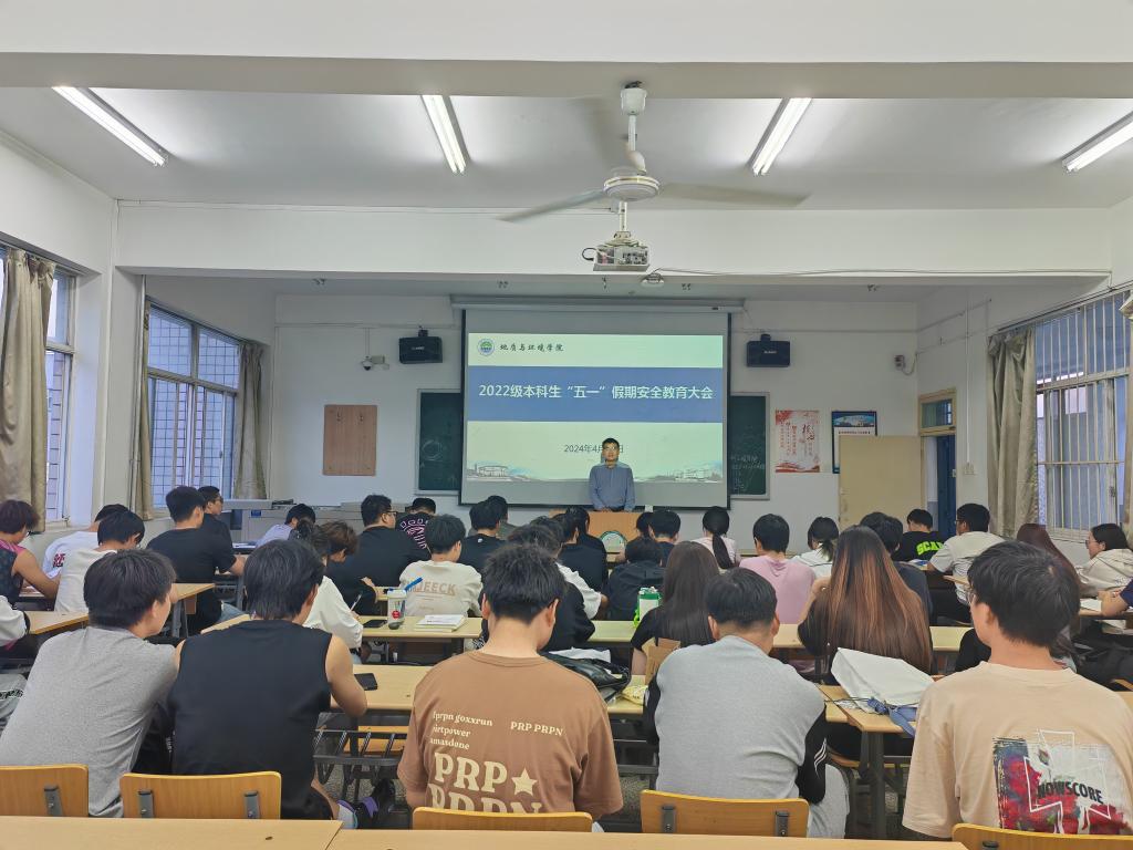 4月28日晚,学院2022级本科生辅导员余小涛深入2022级晚自习教室,召开“五一”假期安全教育会。