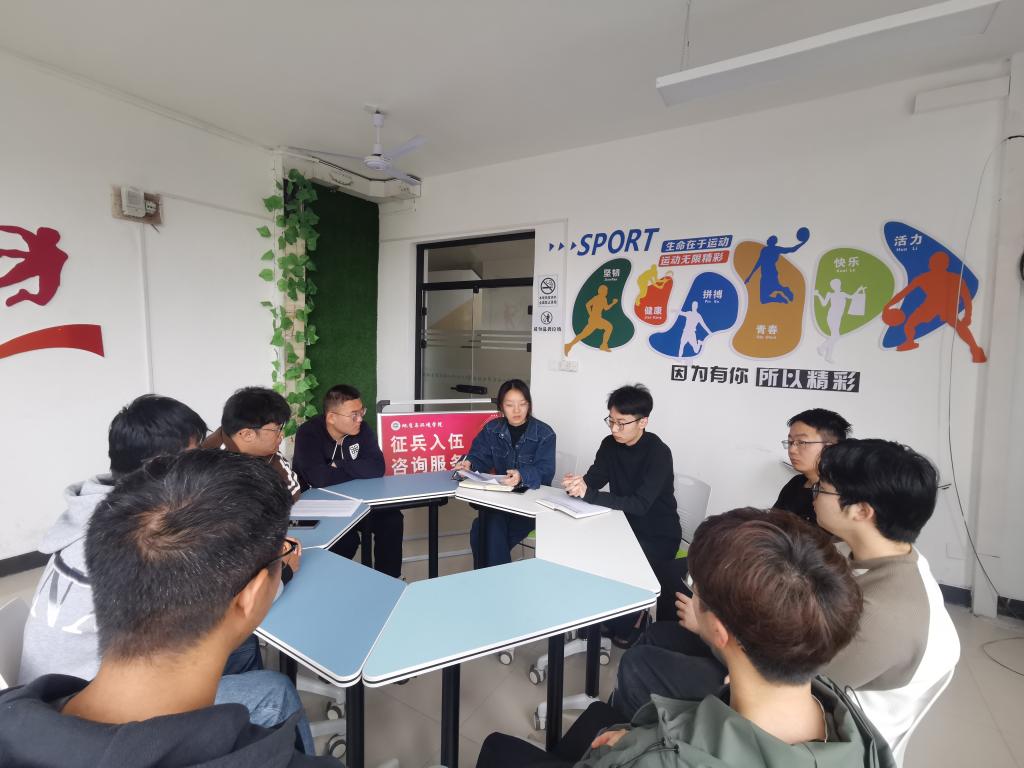 近日,学院在13号公寓“一站式”学生社区设立征兵入伍咨询服务台,召开毕业生应征入伍座谈会,毕业班学生代表参加会议,会议由国防教育专项负责人陈艳丽主持。