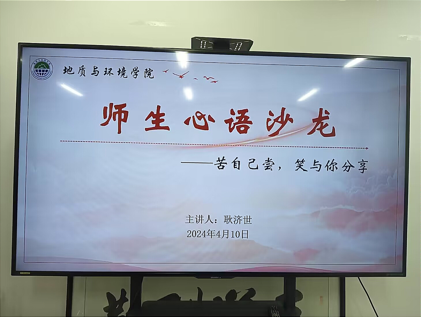 4月10日,学院在11号教学楼321会议室开展师生心语沙龙活动,邀请耿济世老师做主题为“苦自己尝,笑与你分享”的交流分享,李琳主持活动。