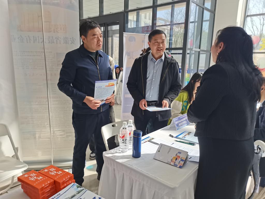 单位负责人俞老师介绍了招聘专业、人才优惠政策、招聘条件等情况。院长孙学阳、副书记刘训明与招聘人员进行了详细的交流。同学们随后投寄了简历。