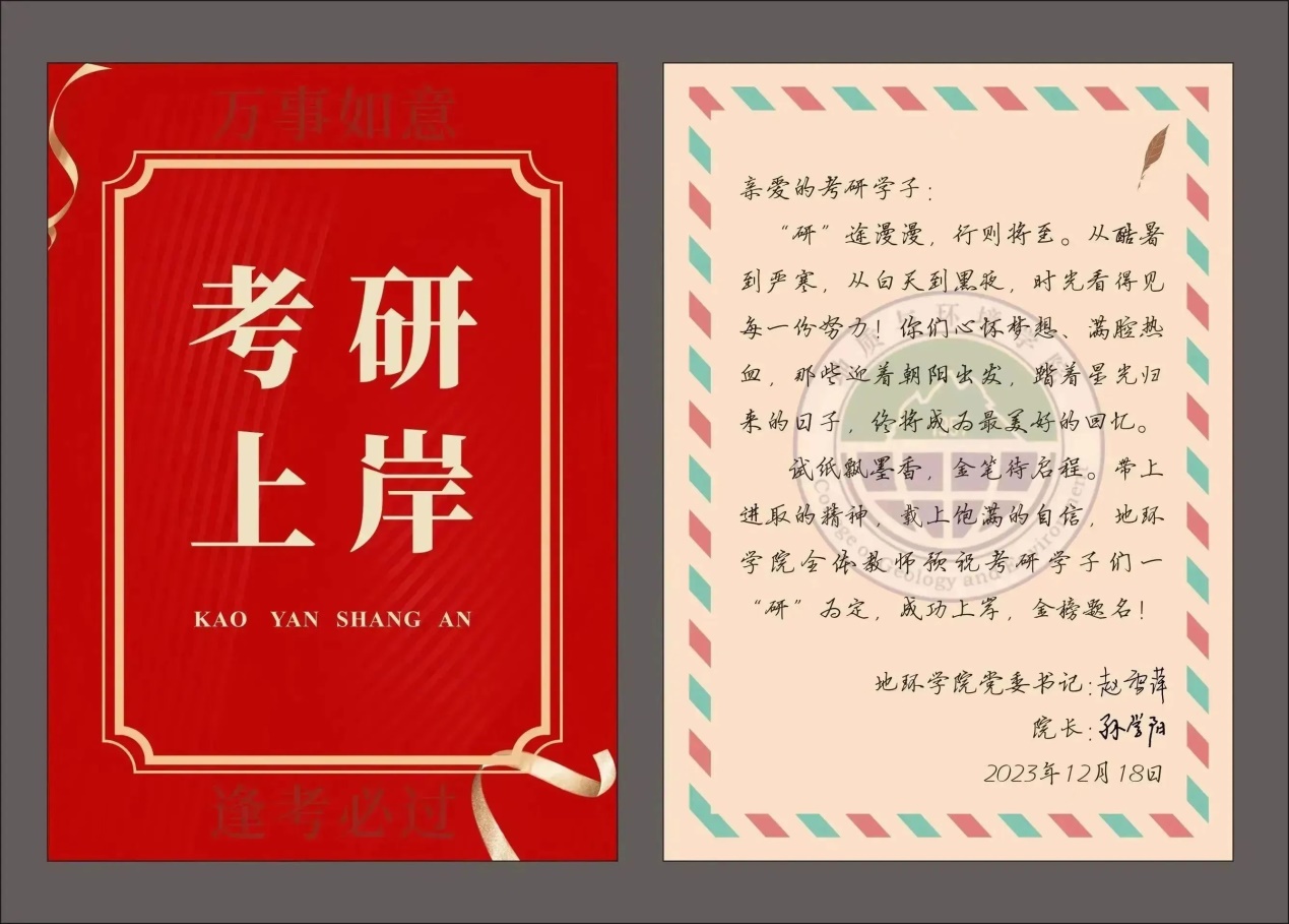 一路上研友相伴,亲友关切。学院师生一直在身后默默支持着你们!你们正在经历人生中的一次重要挑战,或许有焦虑、有恐惧,也有激动!但请不要忘记,身边所有关爱着你们的人,我们是你们坚强的后盾!所有的祝福,送给考研学子们!