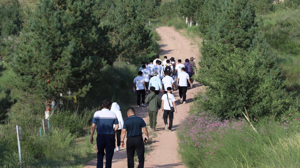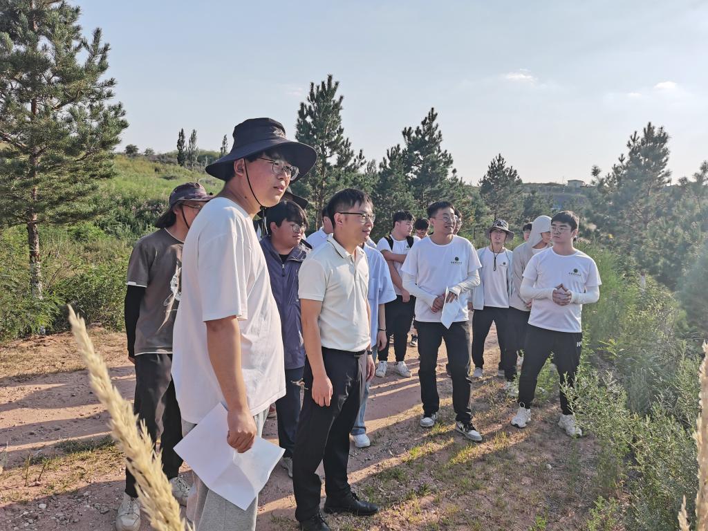 地环学院 “逐梦煤海、能源报国”赴现代化矿井调研实践团第五站深入大柳塔煤矿水土保持科技示范园,毕银丽教授课题组四名研究生带领实践团师生进行实地调研。