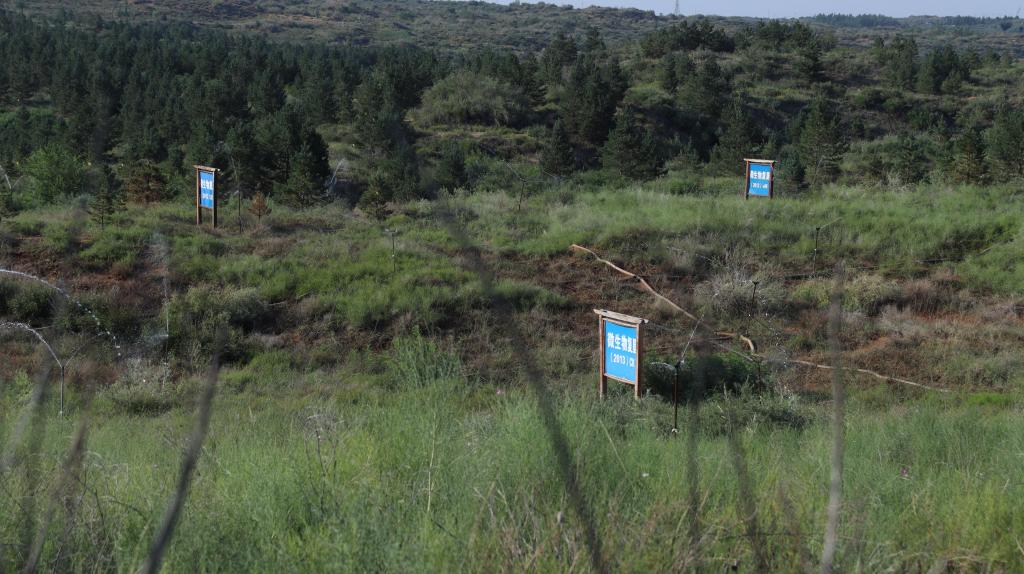 起伏的地面被划分了若干方格,每块区域都有着独属于它的使命,那就是试验田区。通过不同的技术手段处理来观察研究植物生长情况,以此来为采煤塌陷区生态区治理找寻一条新思路新途径。