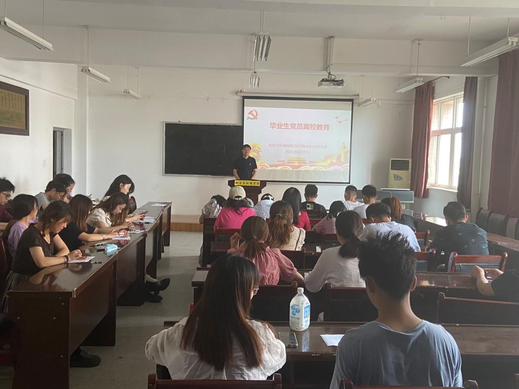 6月25日下午,地环学院2017级本科生党支部在骊山校园11教322召开党员大会,进行毕业生党员离校教育,毕业生党员参会,会议由支部书记余小涛主持。