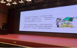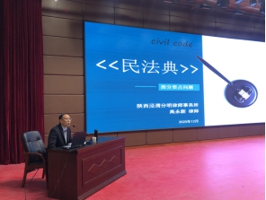问题的解读”为题,从民法典的背景、历史意义,典型案例等方面,对部分要点问题进行了介绍,学院团委书记、辅导员代表、学生代表共计300余人参加了讲座;对学生的知法守法用法,