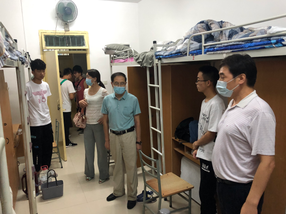 9月9日下午,地环学院党委书记赵雪萍、院长王生全带领班子成员及辅导员深入骊山校园学生宿舍,看望地环学院2020级新生,对2020级本科新生表示关心和慰问,鼓励学生尽快适应大学生活,树立专业思想,过好充实的大学生活;叮嘱新生要遵守学校疫情防控的各项规定,宿舍通风消毒 、注意个人卫生、宿舍卫生,遇到突发情况及时报告,同时,天气转凉,让新生注意增加衣服,防止感冒发烧;最后强调,在接下来的军训中,要多注意身体健康,圆满地完成军训任务。