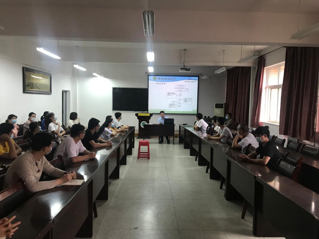 5月20日16:00,地环学院本科“返校学生第一课”宣讲会在临潼校区骊山校园11教322顺利召开,本次宣讲采用线上线下结合方式进行,参加线下会议的学生干部、党员代表按照体温测定、佩戴口罩等要求有序进入会场,院学工办主任林伟、辅导员桓斌斌分别从疫情防控知识、校内管理规定、毕业生管理、就业考研工作等方面进行了宣讲,并就下一步的防控管理和毕业生就业工作进行了安排。