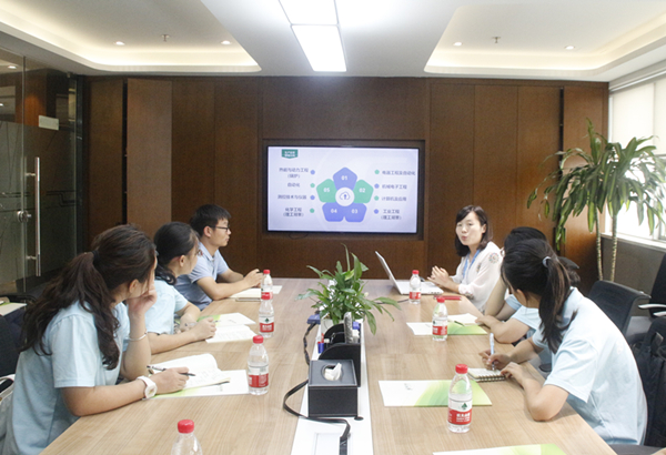 姜丽媛着重介绍了针对大学生培养的“雏鹰计划”人才工程,介绍了公司招聘毕业生的条件和毕业生应具备的能力等,分享了优秀雏鹰学员的案例。随后她与实践团成员从人才培养、职业发展规划、校企合作、就业、行业发展等方面进行了深入交流,并给同学们提出几点建议:一是学习,希望同学们在校期间努力学习,提高学习成绩,完成学业;二是学生干部历练,希望同学们在本科期间能担任学生干部,并努力成为学生党员;三是英语能力,希望同学们在语言能力上有所长。