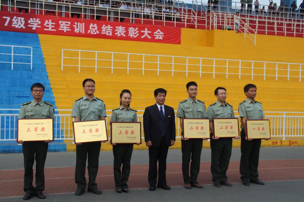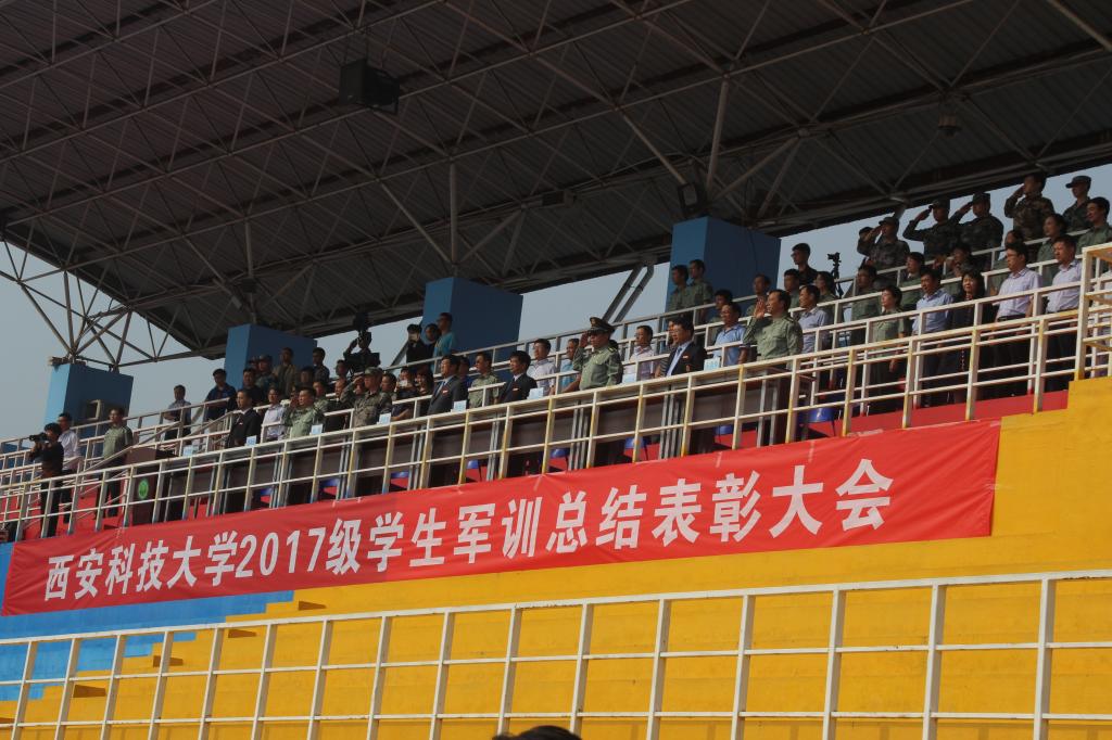 9月24日上午,西安科技大学2017级学生军训总结表彰大会在临潼校区田径场如期举行。我院男生参与的擒敌拳和女生参与的花样队列分别进行了汇报表演,男生们气势如虹、女生们英姿飒爽,他们经受住了14天的军训考验,练就了钢铁般的意志和铁一般的纪律,通过2017级全体师生和承训教官的共同努力,在军训中获得了“先进连队”和“喜迎十九大·歌唱给党听”军训歌咏比赛三等奖等荣誉。