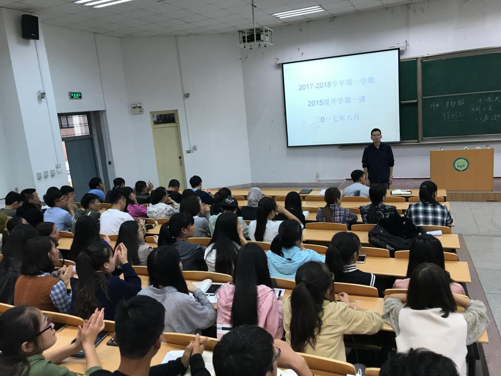 8月30日下午,2015级学生开学第一课在临潼校区9教101顺利举行。会上,2015级辅导员林伟传达了学院学生工作会议精神,对新学期团学工作提出了要求,各班级班委代表上台对本班目前学习生活状态进行了小结,查找了目前班级存在的凝聚力不足、学习自觉性不高等问题,并提出了下一步整改措施。最后,林伟作了大学生人际关系、学业目标管理、就业考研规划的专题报告。