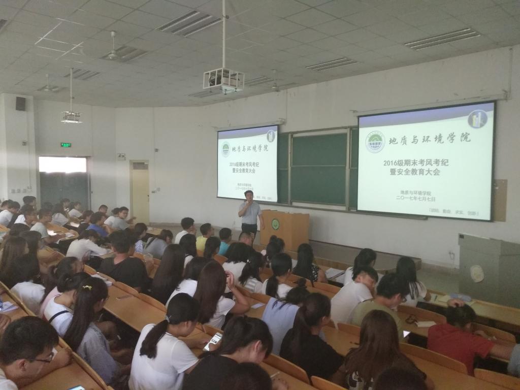 7月7日,地环学院2016级期末考风考纪暨安全教育大会在临潼校区11教322举行。辅导员桓斌斌讲解了考试的意义、分析作弊的原因、作弊所带来的心理危害、作弊对未来学业发展的影响,并带领全体16级学生学习了《西安科技大学学生违纪处分规定》《西安科技大学学分制学生学籍管理规定》中关于考场纪律部分,教育全体学生以良好的心态和积极的态度诚信应考。最后,桓斌斌阐述留校学生假期注意事项、返乡购票信息安全问题,并结合《西安科技大学本科生第二课堂教育学分考核认定办法(试行)》相关规定强调社会实践的重要性与必要性,强调校外社会实践时牢固树立“安全第一”思想意识;在校外活动,要严格要求自己,自觉维护学校的形象和利益。