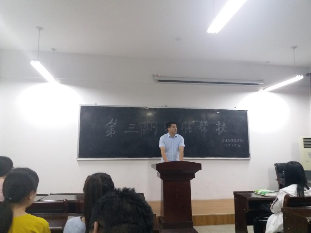 5月25日,地环学院资助联络员桓斌斌在临潼校区11教322主持召开第三期学业精准帮扶活动结业仪式,桓斌斌对学生助教的帮扶工作高度肯定,鼓励学生助教要保持学习热情,取得更好成绩。特别是党员学生,要起好模范到头作用;受助学生要继续努力迎头赶上,在期末复习中稳扎稳打,争取取得长足进步。