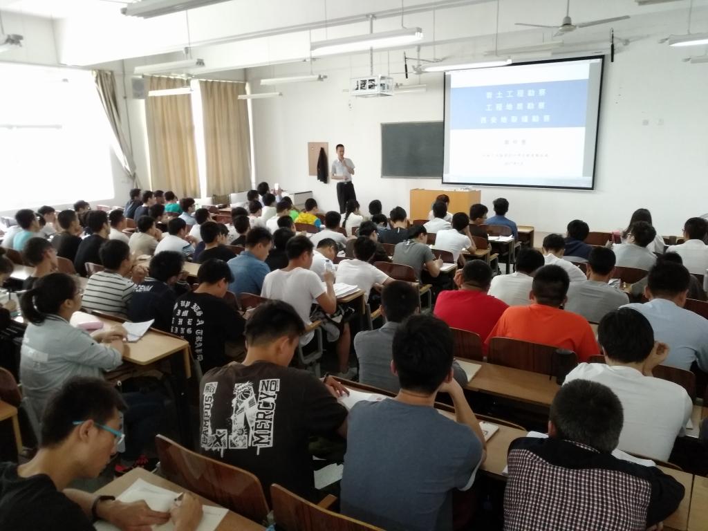 5月23日,地环讲堂第十五讲在临潼校区举行。机械工业勘察设计研究院有限公司高级工程师,国家注册岩土工程师蔡怀恩应邀作了岩土工程勘察专题讲座。蔡怀恩从岩土工程勘查、工程地质勘查概念切入,结合自身工作勘查实例详细讲解了岩土工程勘查的阶段性、流程、方法、应该掌握的基本知识以及野外钻探编录要点等,最后蔡怀恩总结了西安地裂缝勘查情况。地环学院地质工程系主任、学工干部、各年级学生代表共计150余人聆听了报告。