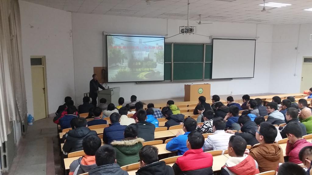 11月30日晚,“地环讲堂”第三讲在临潼校区9教105教室举行。地环学院地质工程学科带头人王念秦教授作了题为“地质灾害的昨天、今天和明天”的报告,他以地质灾害的认识为切入点,结合多个项目的工作实际,运用了大量数据和现场图片,阐述了地质灾害的形成机理和目前防治情况。地环学院辅导员、2014、2015级学生代表300余人聆听了讲座。