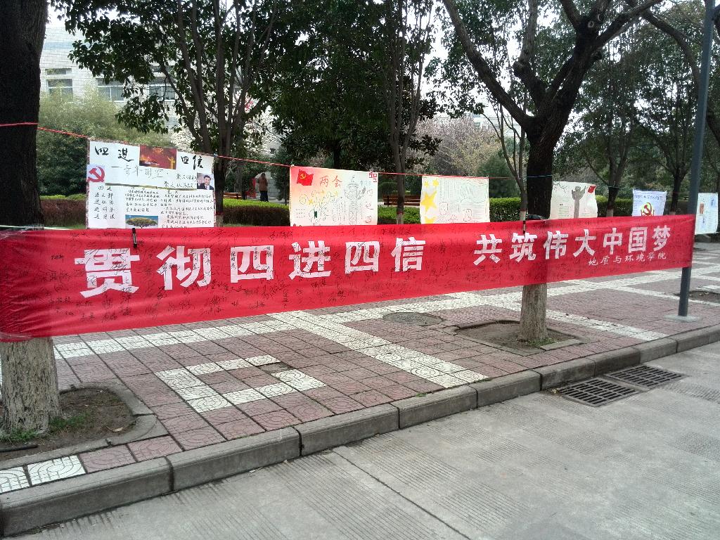 3月26日,地环学院根据校团委的工作安排,积极贯彻团中央《关于开展高校共青团学习宣传贯彻习近平总书记系列重要讲话精神“四进四信”活动的通知》文件精神,前期开展了全院团支部学习习近平总书记系列讲话的学习活动,组织学生观看了两会直播,召开了学生团员干部座谈会,为将学习与实践结合,举办了以宣传”四进四信“为主题的手抄报活动,共收到团支部提交作品80余件,同时采用“线上、线下”结合的评比方式,对作品在校园环道、学院官方微博、微信进行展示。此系列活动加深了学生对”四进四信“内容的理解,促使学生成为讲话精神的”学习者、践行者和受益者“。