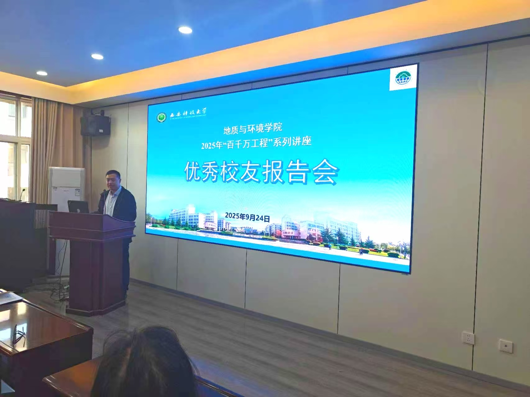 罗东海是2010届地质工程专业硕士毕业生,现任中煤航测遥感集团西安煤航遥感信息有限公司副总经理。罗东海首先介绍了中煤航测遥感集团作为行业领军企业在遥感技术研发与应用方面取得的最新成果,结合工作实践展示了遥感技术如何在地质勘查、环境监测、智慧城市、农业林业等领域发挥关键作用,有效赋能新质生产力的发展。随后,他回忆了在母校的学习时光,讲述了从校园走向企业、不断钻研成长为技术专家的历程,鼓励学生夯实专业基础,紧跟技术前沿,注重实践能力培养,将个人成长融入国家发展战略和行业进步的需求之中。整场报告内容翔实,案例生动,既有理论高度,又有实践指导意义,赢得了在场学生的阵阵掌声。