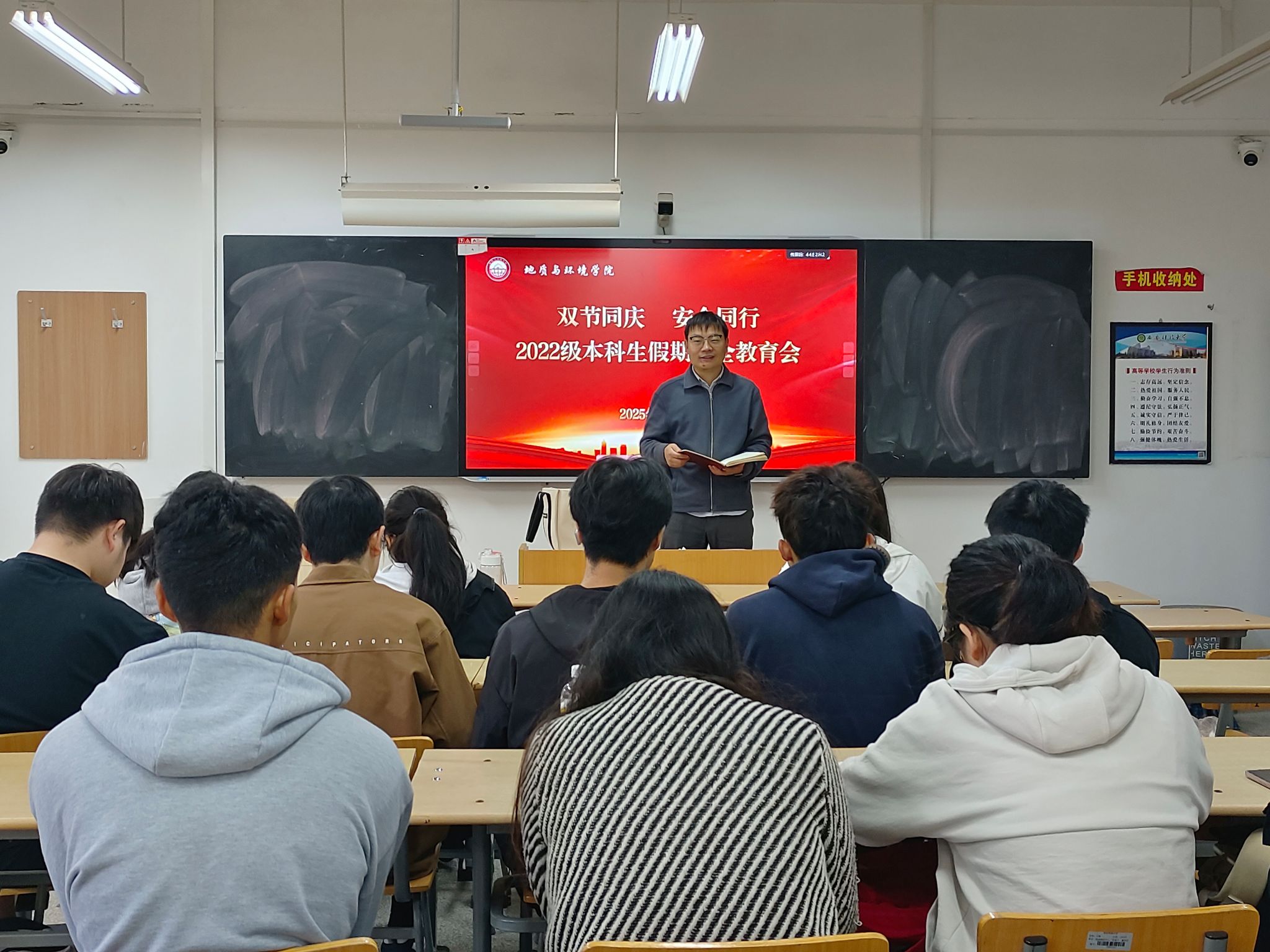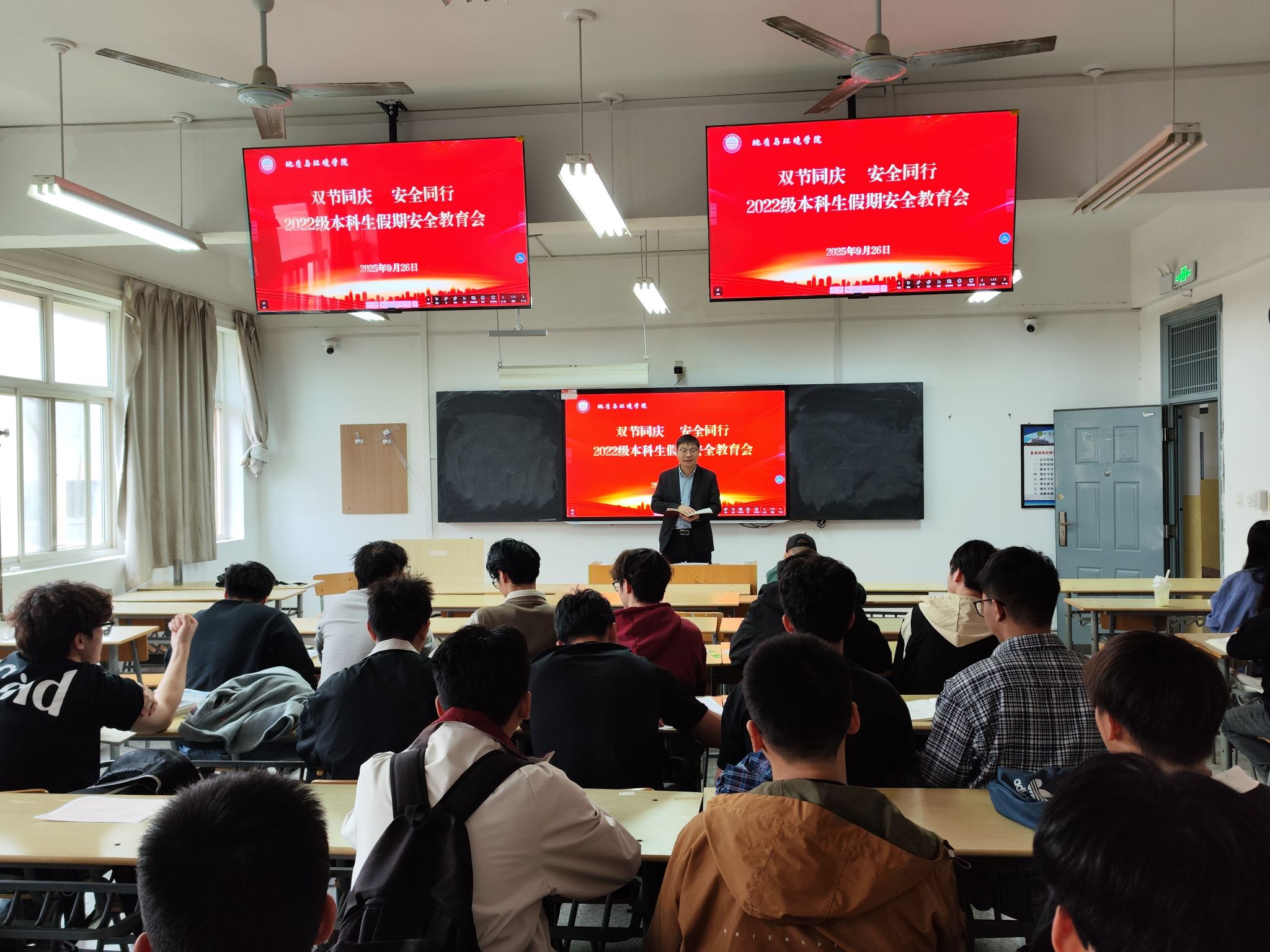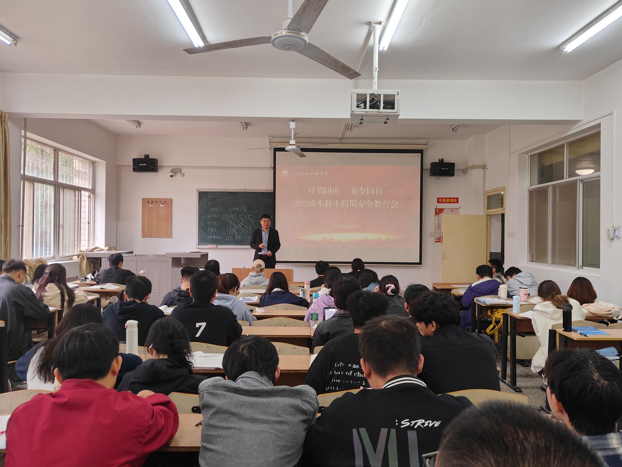 会上,余小涛通报了2025年国庆节、中秋节放假安排,他结合相关案例从人身安全、财产安全、交通安全、饮食安全、网络安全、宿舍安全等方面对全体本科生进行了一趟生动详实的安全教育课。他强调,全体同学要提高安全防范意识,严守安全稳定底线;要严格落实假期去向登记制度,做到底数清、情况明;要规范宿舍用电安全,杜绝使用违规电器,共同维护整洁安全的宿舍生活环境。