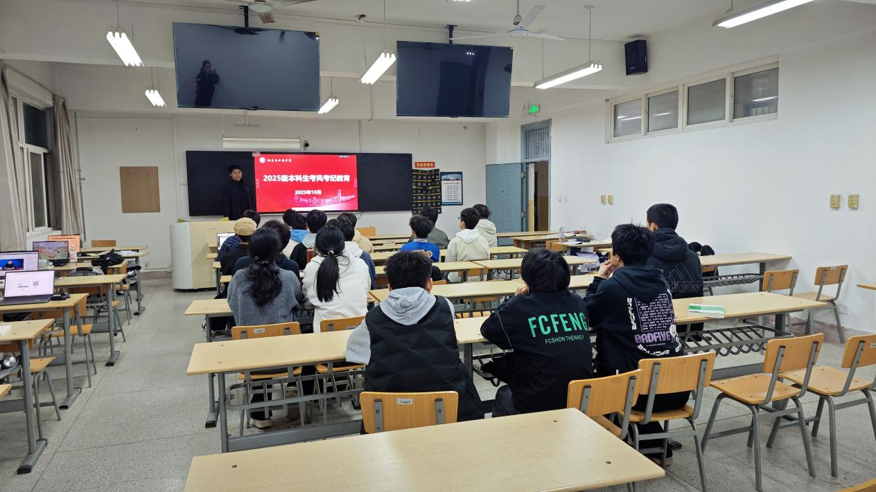 为营造公平、公正、诚实、守信的考试环境,进一步强化学风建设,引导学生树立正确的学习观和考试观,10月29日,学院召开2025级本科生考风考纪专题教育会。2025级辅导员周佳瑞主讲,全体2025级本科生参加会议。