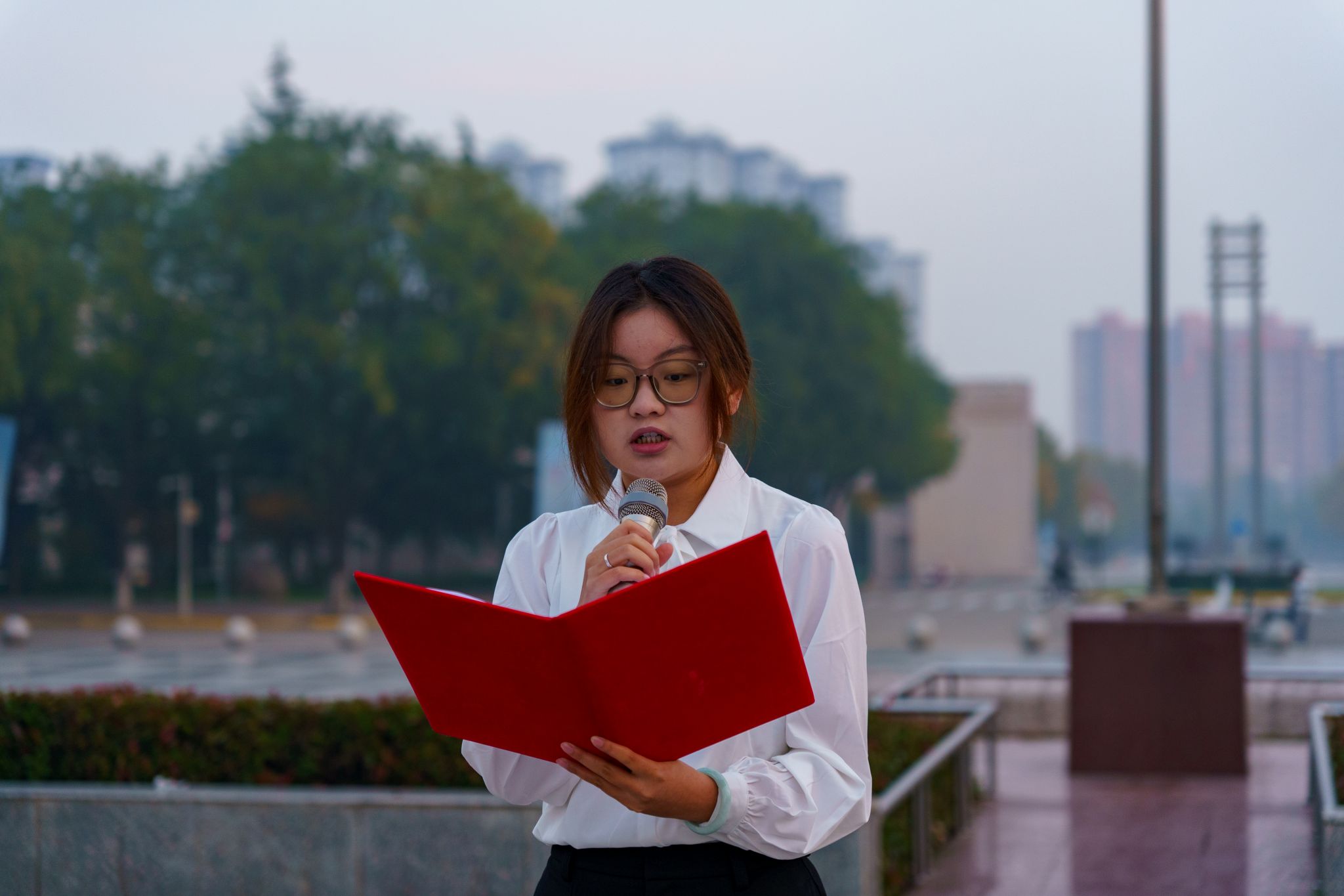 红言宣讲团郭依麟同学以“以青春之我,承抗战之魂” 为主题,借左权冲锋捐躯、江竹筠绝境守信仰的事迹,诠释先辈担当,点明抗战精神是民族瑰宝,引总书记嘱托号召青年传承精神、勇担责任,书写复兴华章。