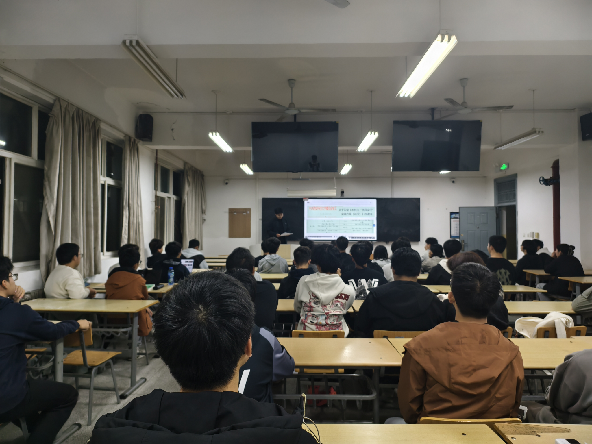周佳瑞还对《实施方案》进行了系统而深入的解读。他详细说明了从课堂考勤、学业成绩到学科竞赛、志愿服务等多元化的积分规则体系,并明确了积分申报、审核、兑换及公示的全流程操作规范。周佳瑞强调,该体系不仅关注个人的学业进步,更注重班集体和宿舍的共同成长,积分将与“先进班集体”、“标兵宿舍”、“党团先锋模范宿舍”等各级荣誉评选及实物奖励直接挂钩,实现“以积分记录成长,以成长兑换未来”。