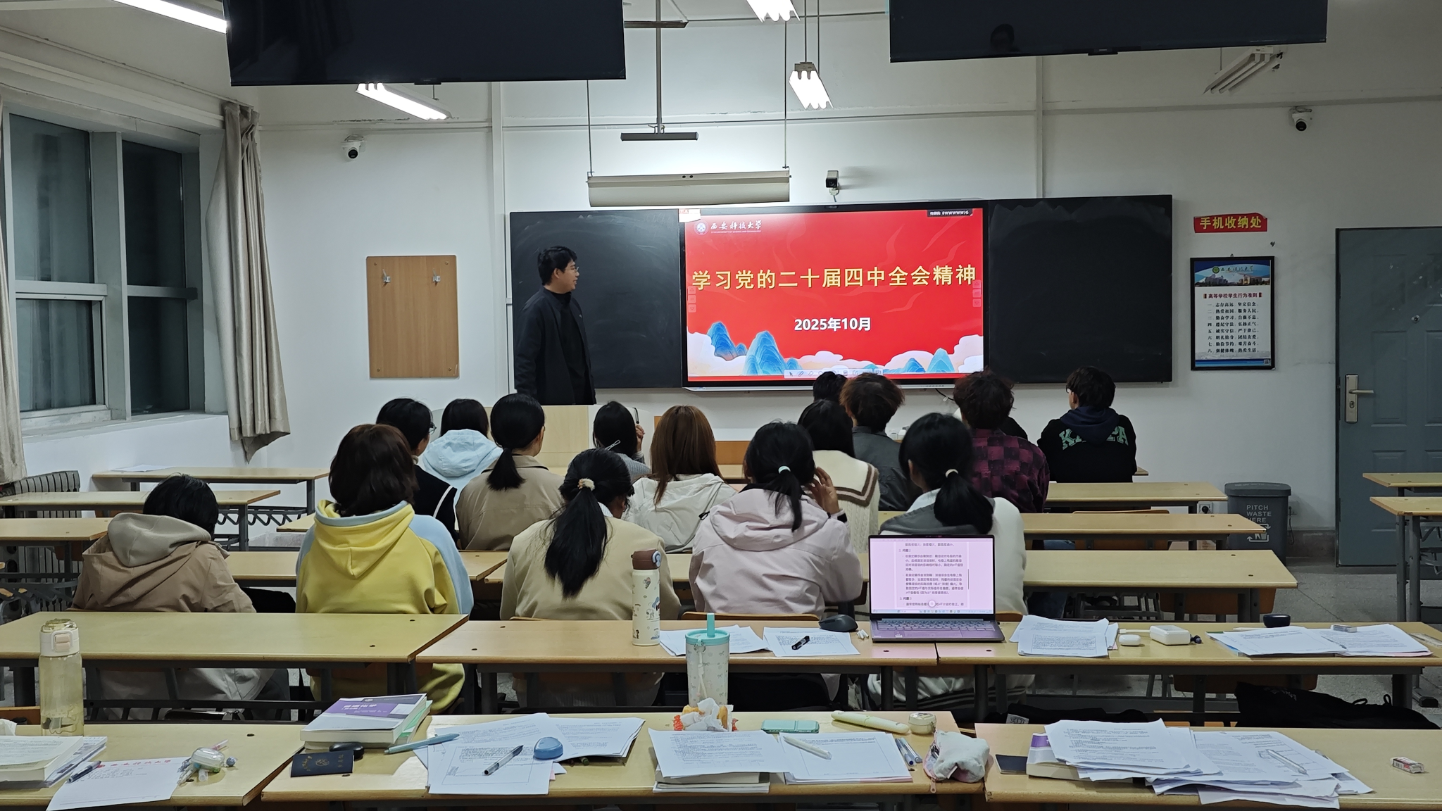 为引导青年学生深刻领会党的二十届四中全会精神的核心要义与重大意义,切实将思想和行动统一到党中央的决策部署上来,11月5日,学院在11号教学楼组织召开2025级本科生深入学习贯彻党的二十届四中全会精神专题学习会。本次学习会由2025级本科生辅导员周佳瑞主持,并采用分班学习的形式,由各班团支书担任领学。