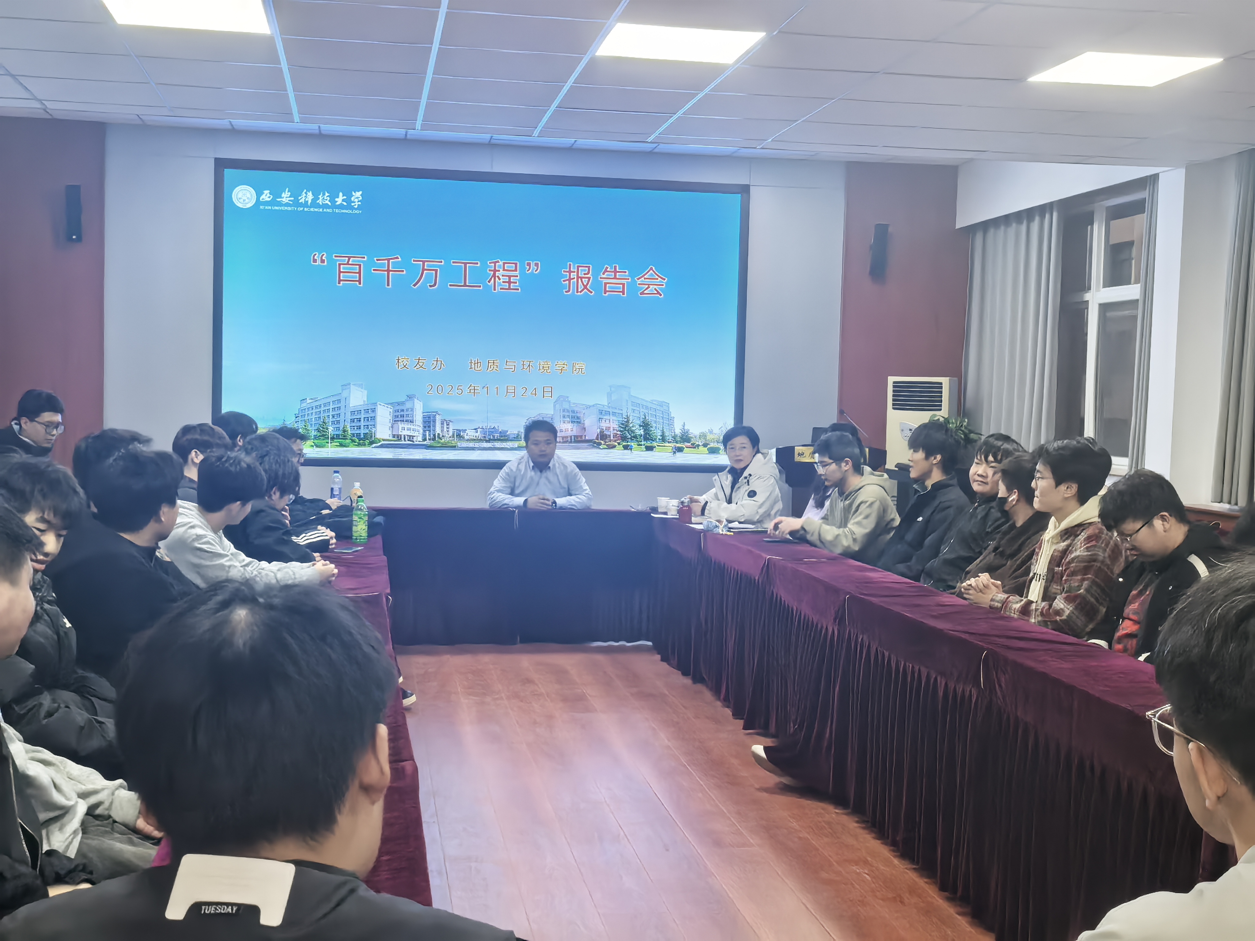 11月24日下午,学院在骊山校园11号教学楼322会议室举办“百千万工程”系列讲座,特邀学院2013届地质工程本科毕业生李晓龙,以“从课堂到矿井—煤矿水害防治实践经验分享”为题交流,学院学工办主任李琳主持讲座,2024级本科生代表50余人参加。