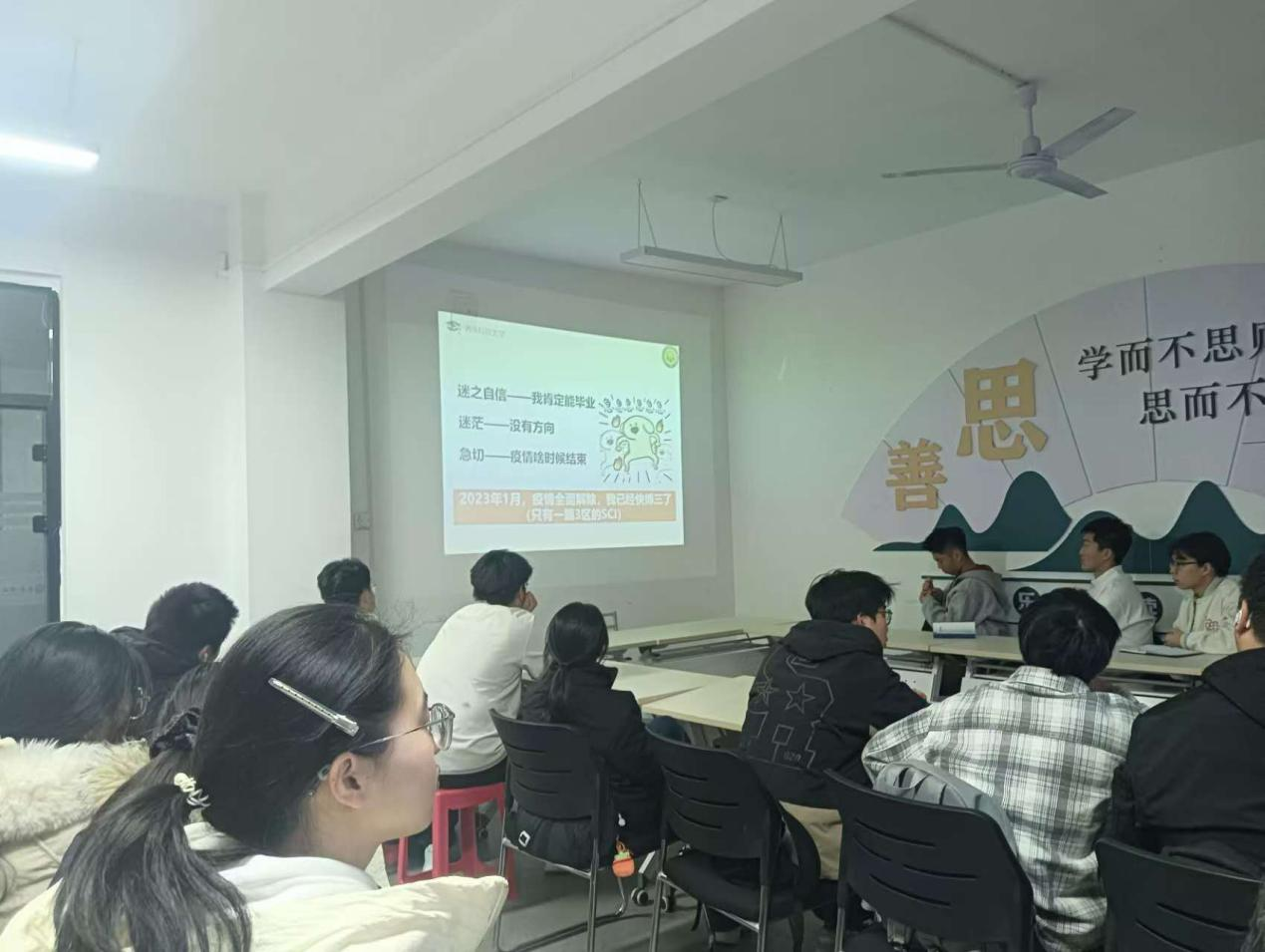 在互动环节,同学们围绕“如何平衡学业与学生活动”“怎样确立科研兴趣”“本科阶段应培养哪些核心能力”等问题踊跃提问,苏老师一一予以细致解答。他尤其强调“不抱怨、不迷茫、坚定信念”的积极心态,鼓励学生主动把握成长主动权,以持续努力刻画自己的人生轨迹。