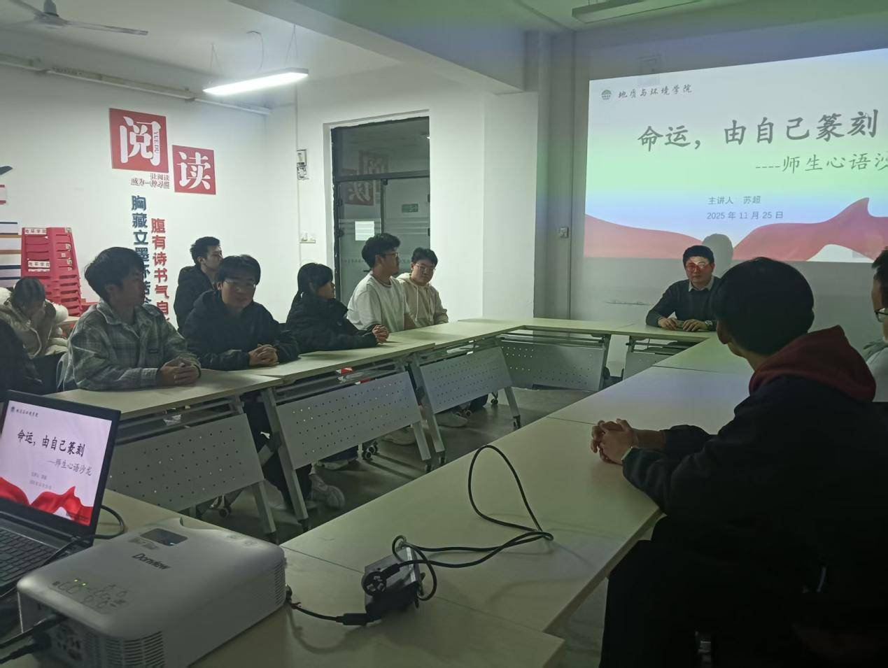 为深入推进“三全育人”工作落地见效,加强对学生的价值引领与成长导航,11月25日,学院在“一站式”学生社区举办“命运,由自己篆刻”师生心语沙龙活动。活动邀请学院青年教师苏超担任主讲嘉宾,2025级本科生代表参会。