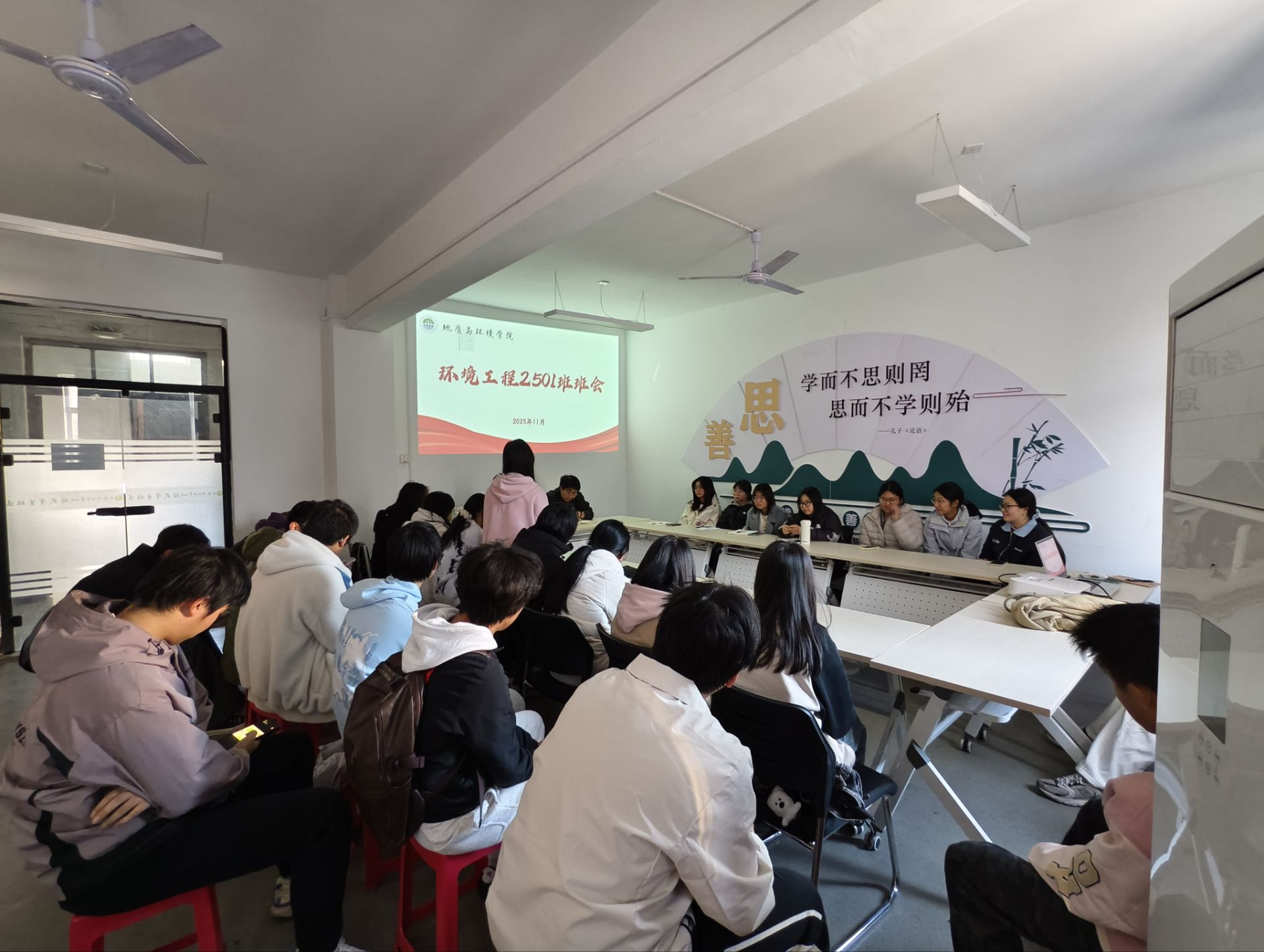 为深入了解学生入学适应情况,强化学风建设,引导学生明确发展目标,11月27日,地质与环境学院环境工程2501班在“一站式”学生社区召开主题班会。2025级辅导员周佳瑞主持会议,环境工程2501班班主任张祎教授主讲,班级全体学生参加。