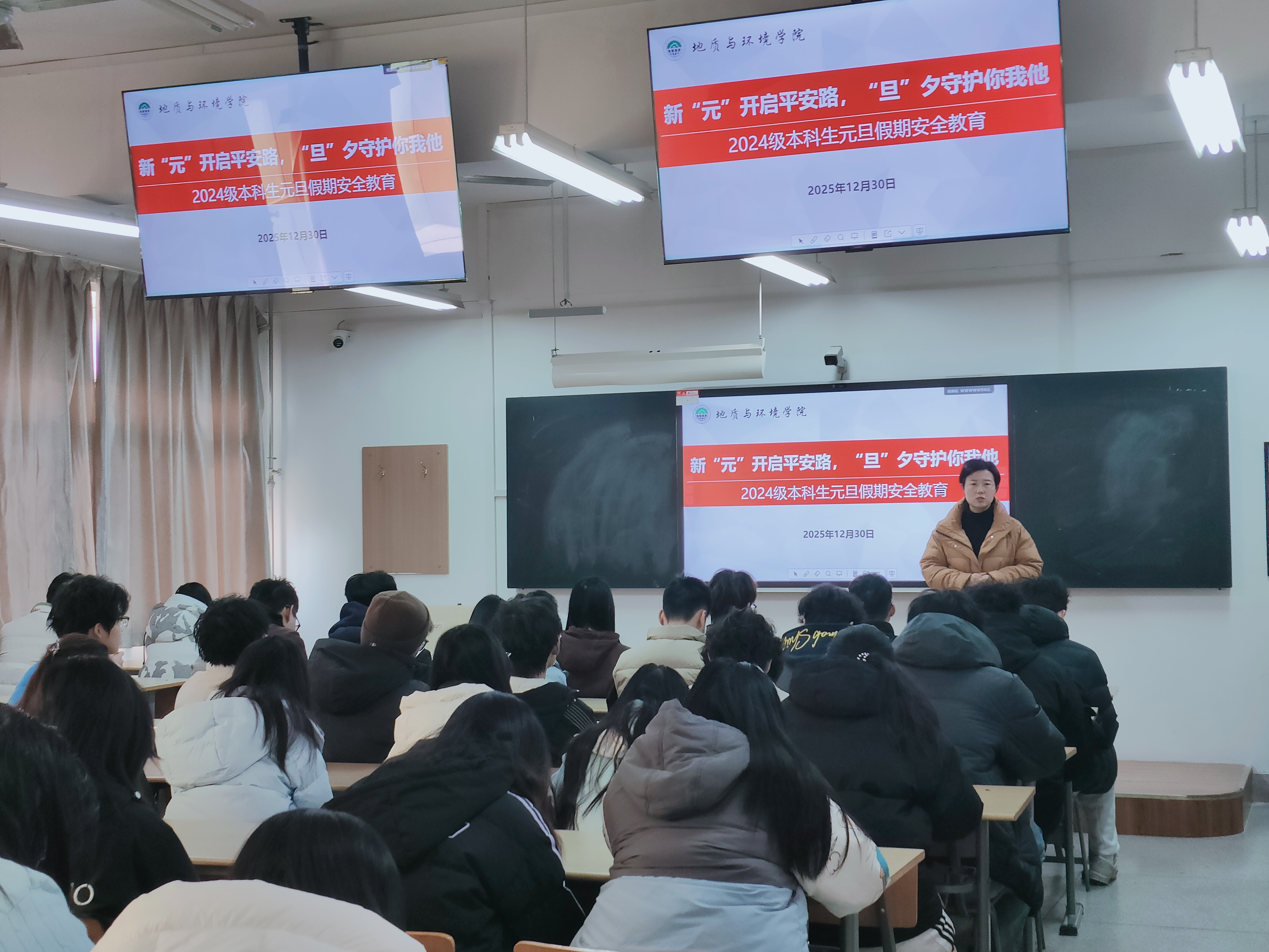 元旦佳节将至,为强化2024级本科生安全防范意识,保障学生度过平安祥和的假期,12月30日至31日,学院学工办主任、2024级本科生辅导员李琳,分批次在2教105、11教504及煤炭科技中心114,为2024级9个班本科生开展元旦假期安全教育会。