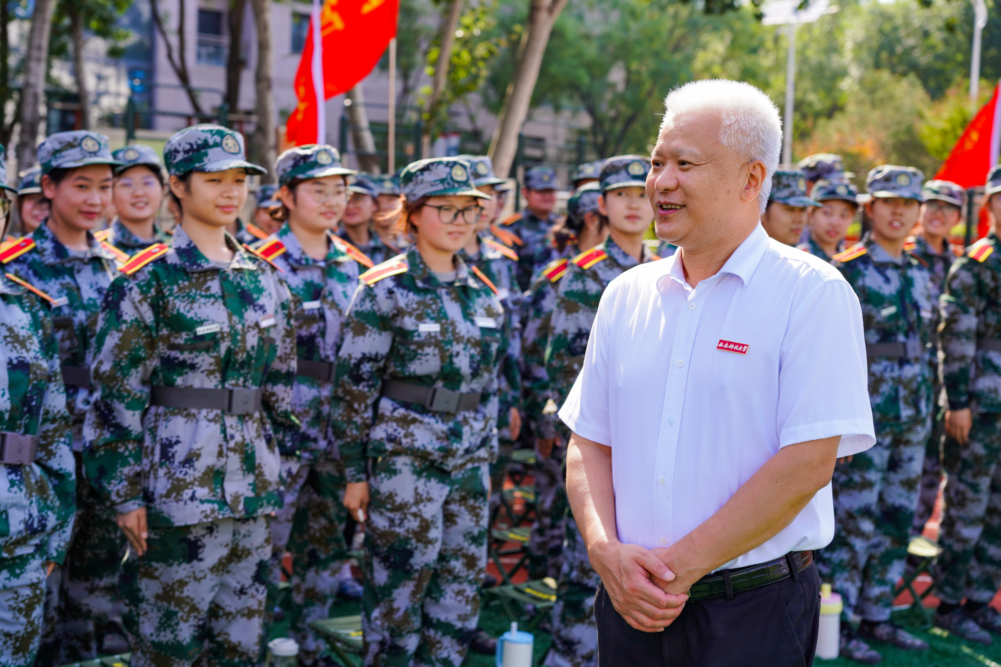 训练期间,西安科技大学校长邓军细致观摩了同学们的军体拳、匍匐前进和战场救护等训练内容,对大家高昂的训练热情、日渐纯熟的动作和顽强拼搏的作风表示高度赞赏。
