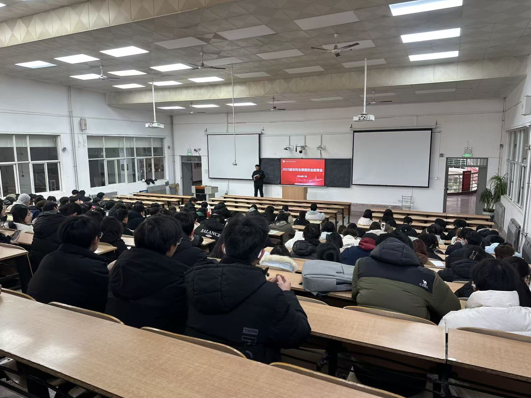 为切实做好寒假期间学生安全教育与管理工作,增强学生安全防范意识和自我保护能力,引导学生度过一个平安、充实、祥和的假期,2026年1月8日,学院组织召开2025级寒假假期安全教育大会。会议由2025级本科生辅导员周佳瑞主持,2025级全体学生参加。