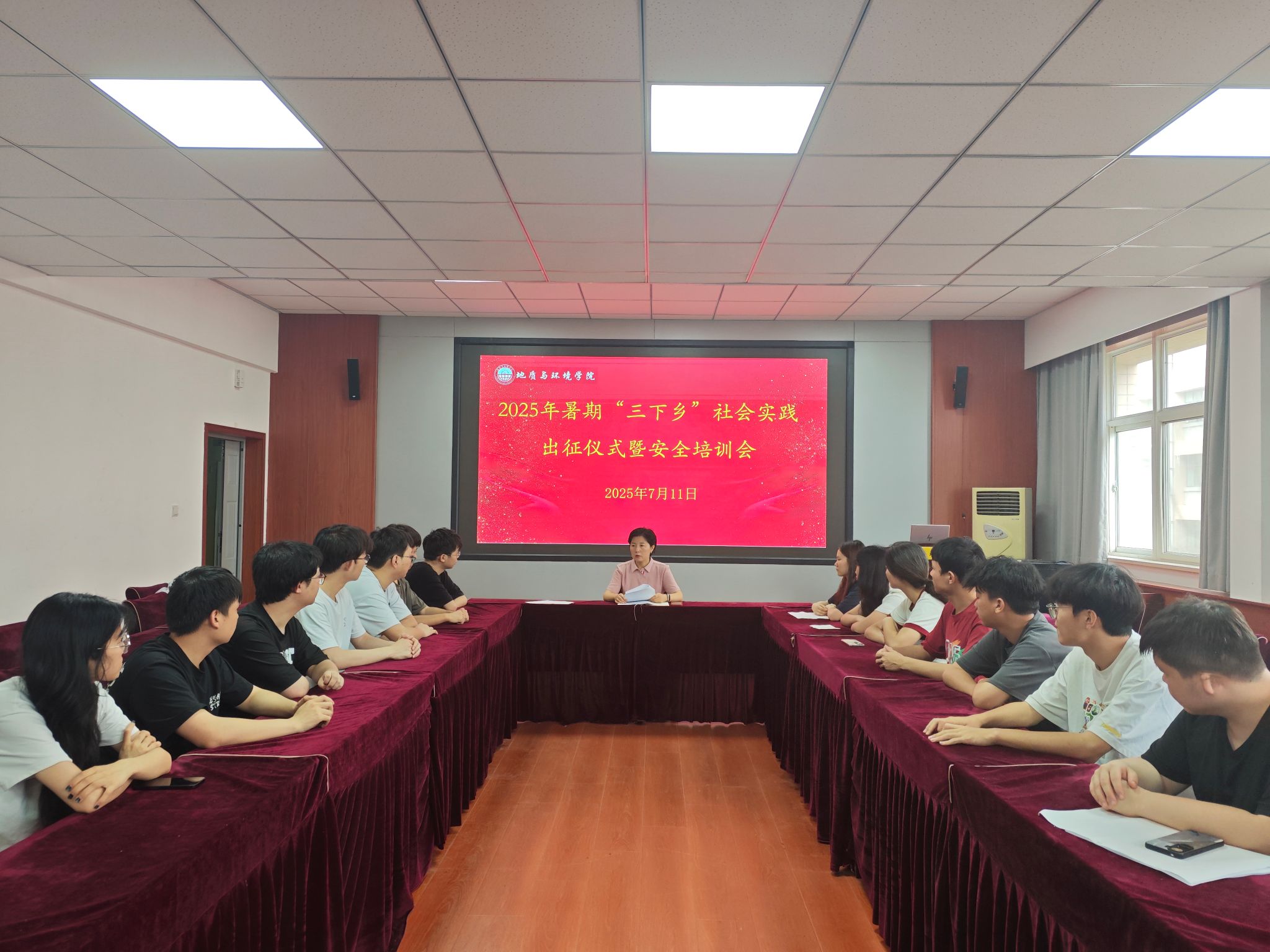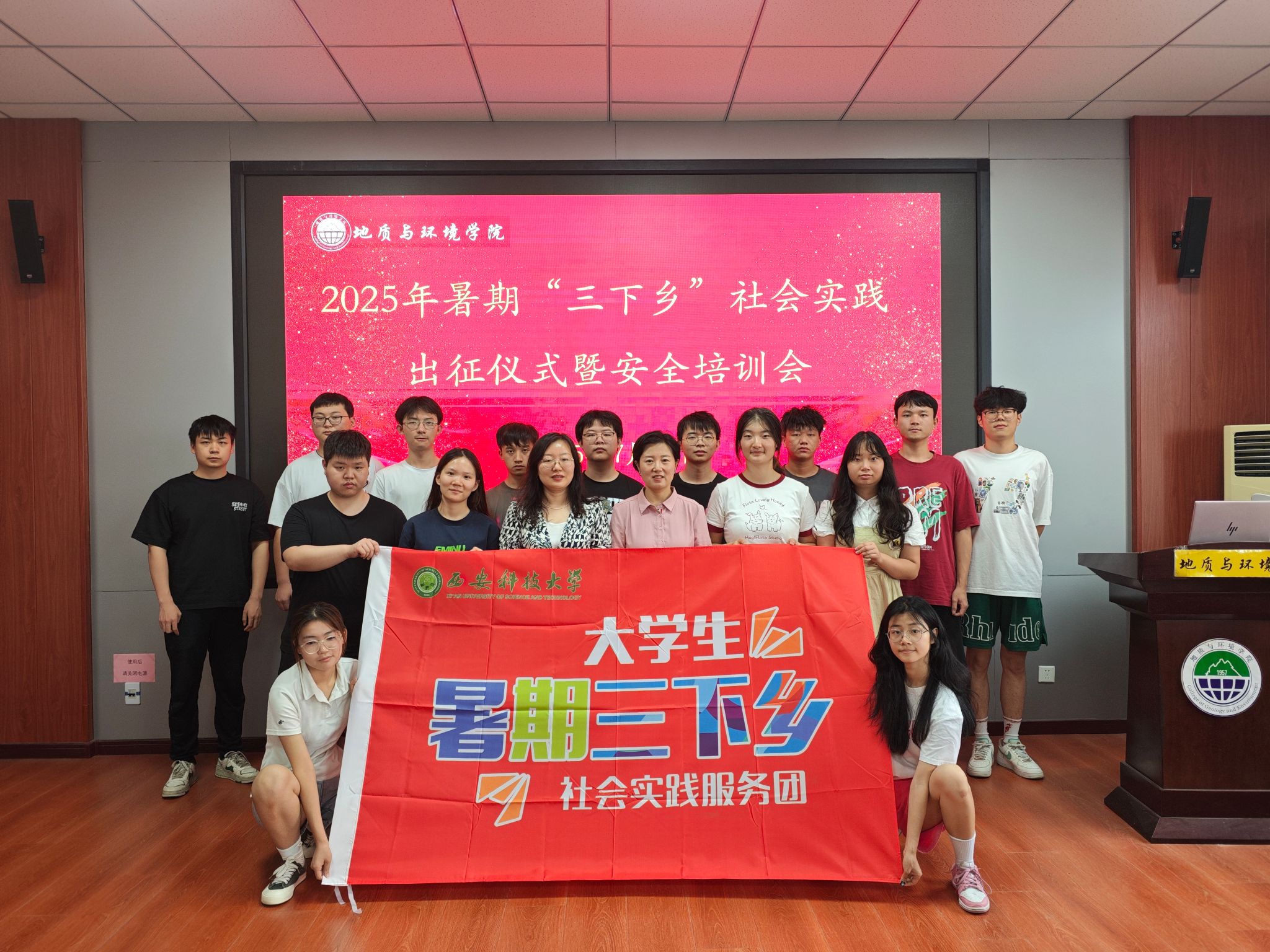 为深入学习贯彻习近平新时代中国特色社会主义思想,以习近平总书记的回信激励广大青年师生主动选择到西部、到乡村、到基层开展志愿服务,在实践中展现西科青年昂扬向上的精神风貌和强国有我的责任担当。7月11日,学院在骊山校园11号教学楼322召开了2025年暑期“三下乡”社会实践出征仪式暨安全知识培训会。
