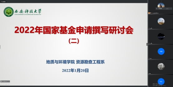 为了进一步推进2022年国家自然科学基金申报工作,提升申请书撰写质量,2022年1月20日下午,资源勘查工程系线上举办了第二次“2022年国家自然科学基金撰写研讨会”。