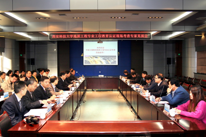 10月27日至29日,中国工程教育认证协会专家组组长、中国地质科学院常务副院长朱立新,吉林大学北区综合办公室主任孙英男,中国地质大学资源学院副院长夏庆霖,天津地质矿产研究所所长金若时,内蒙古自治区国土资源厅总工程师张宏,山东地热矿泉水专业委员会主任委员朱友强,中国地质学会秘书处副处长华丽娟,中国地质学会赵小萱等一行八人来我校开展地质工程专业认证现场考查工作。我校党委书记刘德安,纪委书记刘子实,副校长李树刚,校地质工程专业认证领导小组成员、各学院分管本科教学工作的负责同志、地环学院领导班子成员、地质工程专业负责人、实验室负责人及骨干教师和学生代表参加了汇报会及考查意见交流会。