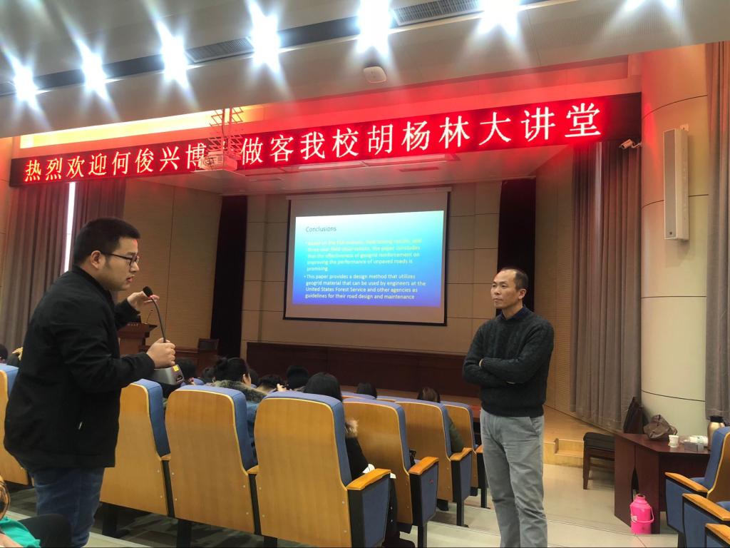 13日,美国北亚利桑那大学何俊兴教授应邀做客我校胡杨林大讲堂,作了题为《格栅网在土石路面补强中的应用》的学术报告。报告会由研究生院主办,地质与环境学院承办,地环学院副院长唐胜利教授主持,全校300余名研究生及教师聆听了报告。