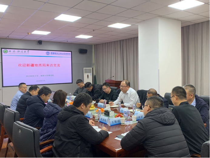 2025年1月16日下午,新疆地质局下属七个单位的领导、技术人员前来我院进行座谈交流。座谈会在雁塔校区煤科大楼613会议室举行。我院赵雪萍书记、孙学阳院长、刘训明副书记、赵洲副院长、学术带头人王鹏教授参加了此次会议。