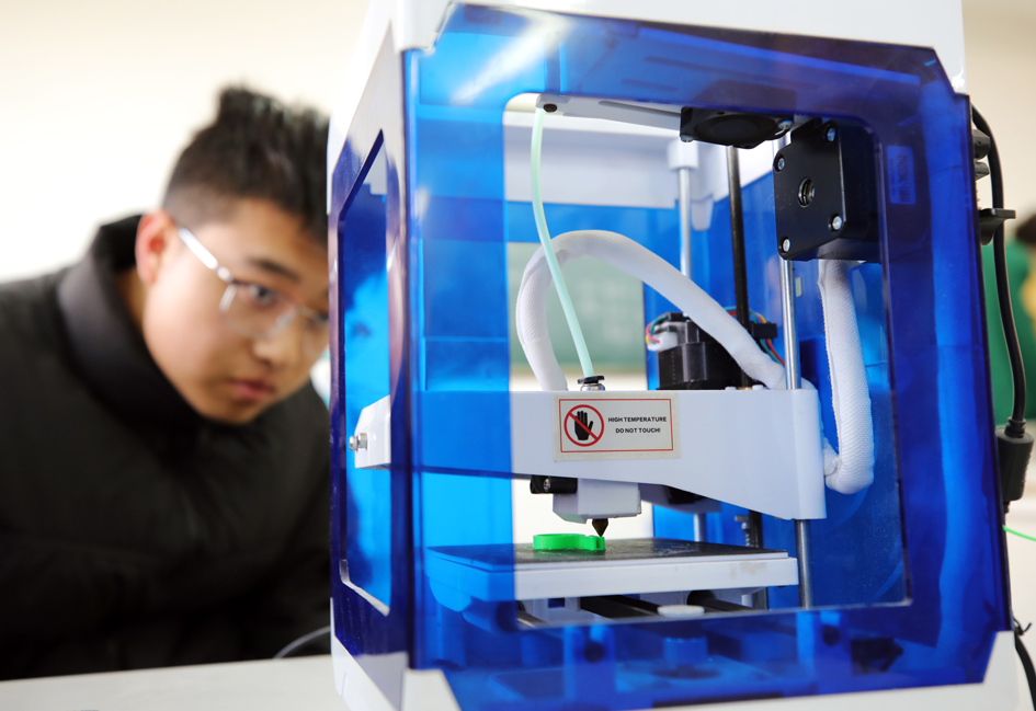 ▲3月8日上午,西安科技大学智能制造2023级学生在三维数字化设计与制造实验室在做3D打印实验。