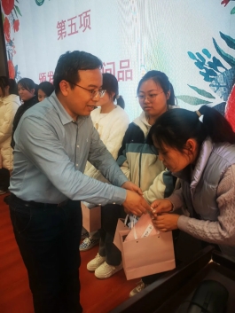 最后,在地环学院学生的舞蹈表演中,学校为每一位参加活动的同学们送上“女生节”节日祝福及礼品。