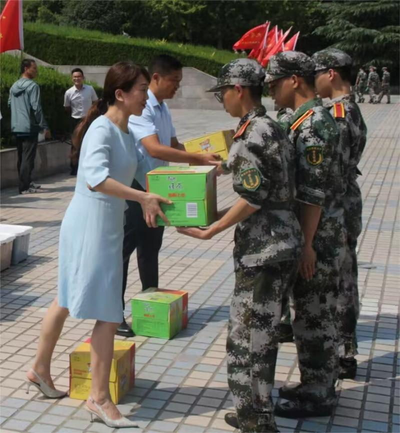 随后,参加活动的老师们将慰问品送到同学们和教官们手中,鼓励同学们再接再厉,继续攻坚克难、昂首向前,高质量完成军训任务,展现地环学子的精神面貌。