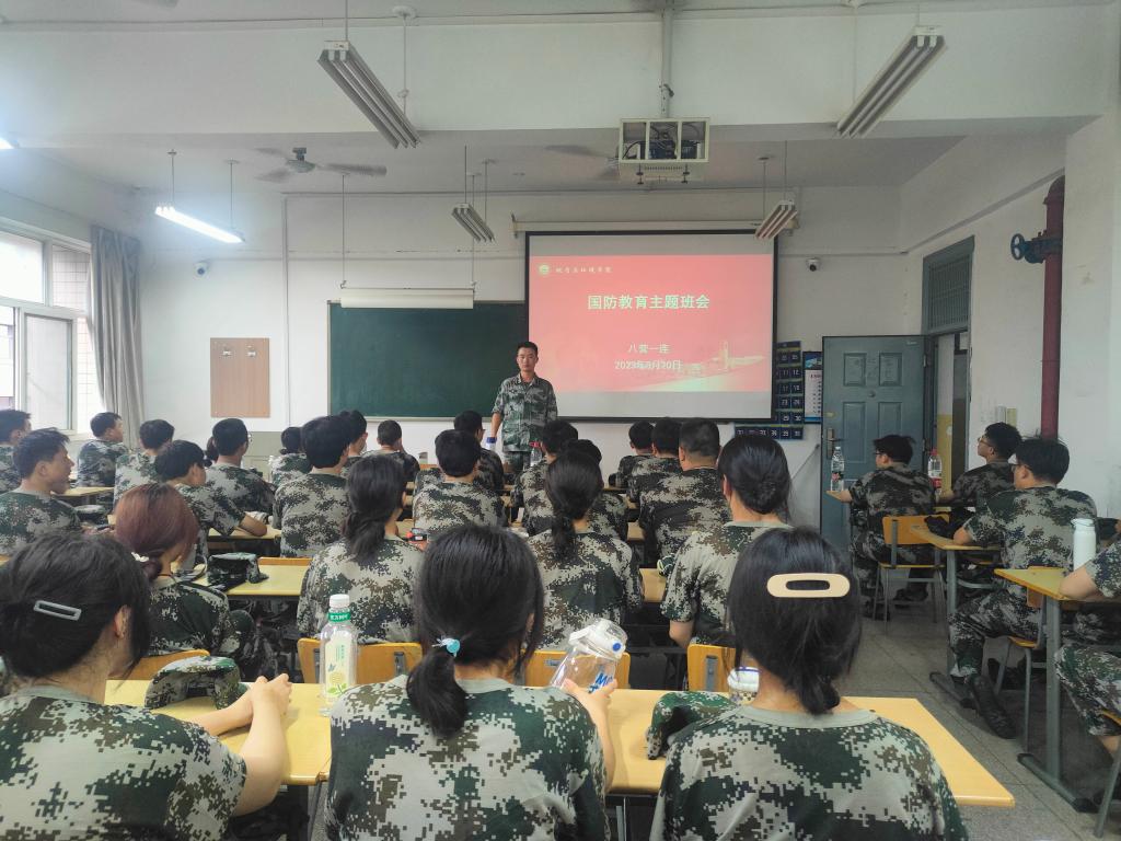 8月22日,学院在骊山校园11教五楼教室召开国防教育主题班会,2022级全体参训本科生参会,主题班会由各连连长主持。