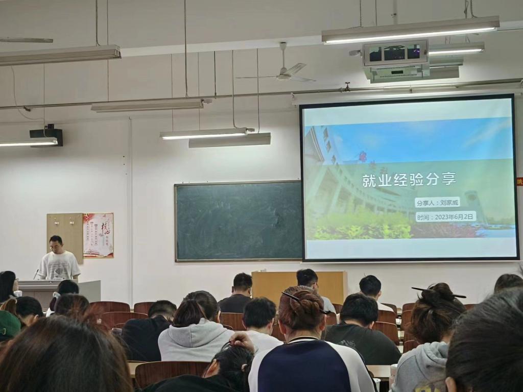 就业指导课上,学院分专业分批次邀请2023届不同专业的20名同学分享了他们的考研和求职经验,引导2024届毕业生确定合理的就业考研目标,推动学院就业考研工作有序开展。