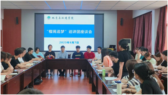 为充分发挥先进学生励志引领作用,6月7日学院在骊山校园11教322会议室举行“榴苑追梦”巡讲报告团座谈会,5名巡讲团成员及学生代表50余人参加座谈会,座谈会由学院资助专项负责人余小涛主持。