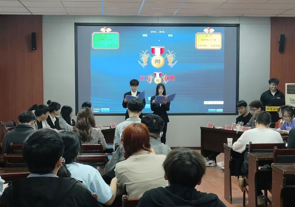 为深入学习宣传贯彻党的二十大精神,引导推动大学生深刻领会党的二十大报告的重大意义、丰富内涵、核心要义、实践要求,切实把行动和思想统一到党的二十大精神上来,营造学习宣传贯彻党的二十大精神浓厚氛围,展现地环学子的精神风采,活跃校园气氛,学院举办了“载知行万里,辩声满校园”新生辩论赛。辩论赛共有9支队伍参加,分别来自2022级的9个班。经过抽签分组、淘汰赛制,最终遴选出环境工程2202班与地下水科学与工程2201班两支辩论队伍进行决赛。