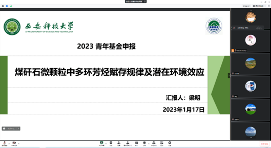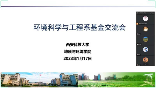 2023年1月17日,学院环境科学与工程系举办了国家自然科学基金申请线上交流会。环境科学与工程系主任刘转年教授、党小虎教授及环境科学与工程系全体青年教师参加了会议。