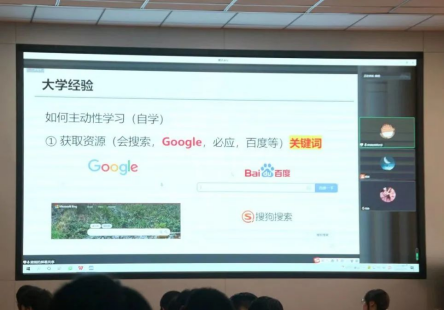 梁明分别从“何为大学”“大学之路”“经验分享”三个方面向大家传授经验。