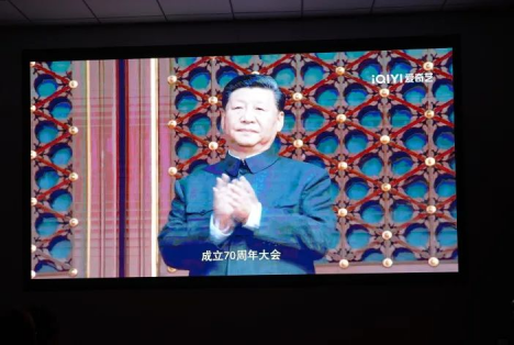 全体观影人员整齐就座,庄严肃穆。国庆大阅兵向全国人民、海内外华人华侨及世界各国展现出祖国强大的军事力量、军人们的英姿飒爽。